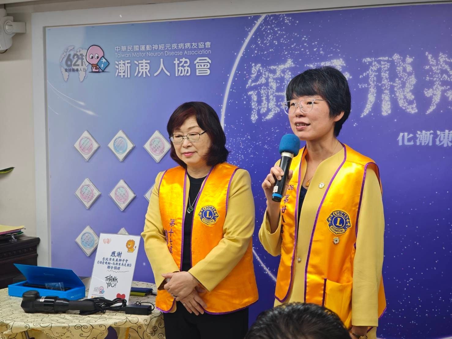 11/24在協會舉辦的「領愛飛翔~化漸凍為見動」聯合社會服務,真的很令人感動。感謝台北市天美獅子會以及國際獅子會300A1區的所有獅友,一早就帶著滿滿的關懷來到協會,讓病友和家屬感受到真正的支持與陪伴。