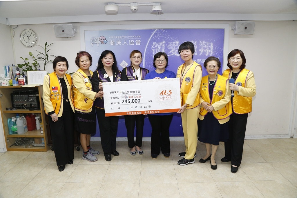 11/24在協會舉辦的「領愛飛翔~化漸凍為見動」聯合社會服務,真的很令人感動。感謝台北市天美獅子會以及國際獅子會300A1區的所有獅友,一早就帶著滿滿的關懷來到協會,讓病友和家屬感受到真正的支持與陪伴。
